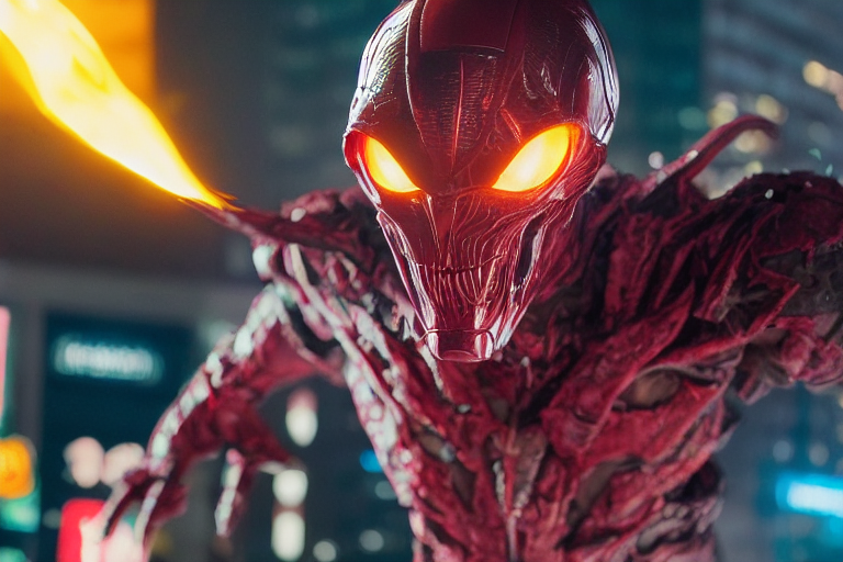 L'alieno combatte contro Skull Head in Time Square in fiamme